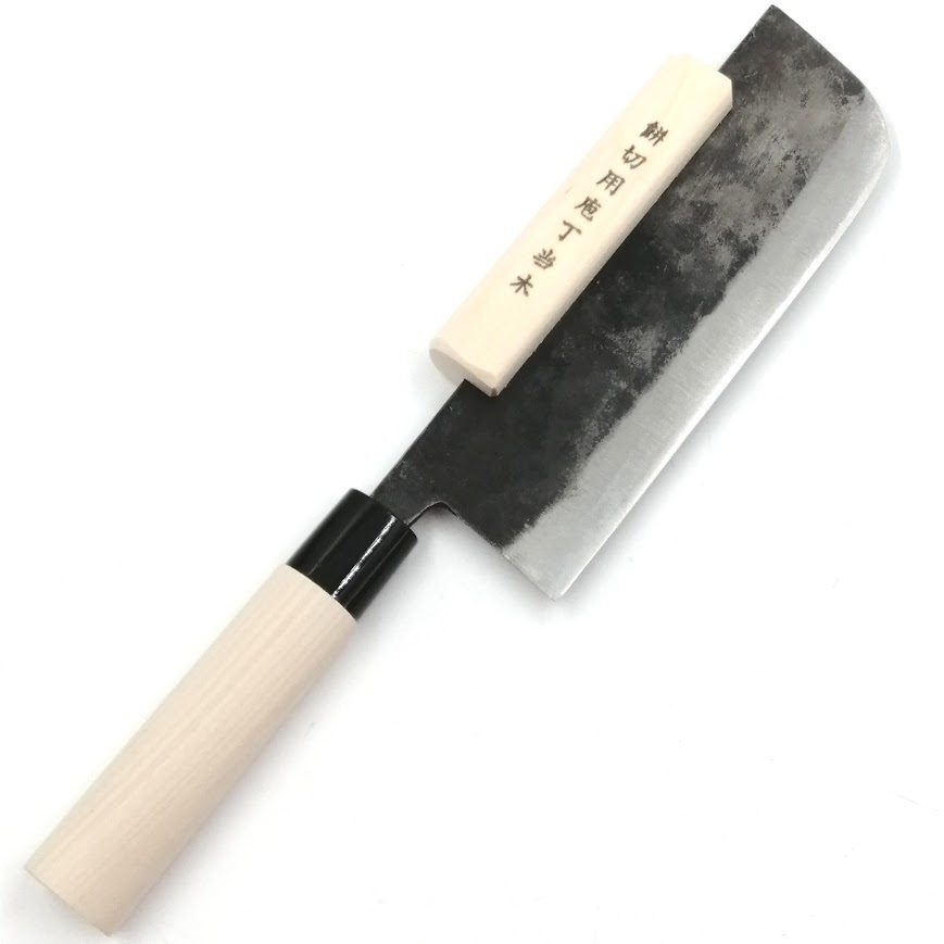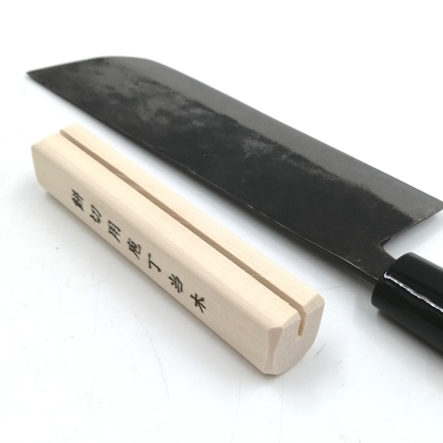 宝馬 餅切包丁 黒打 180mm 当て木付