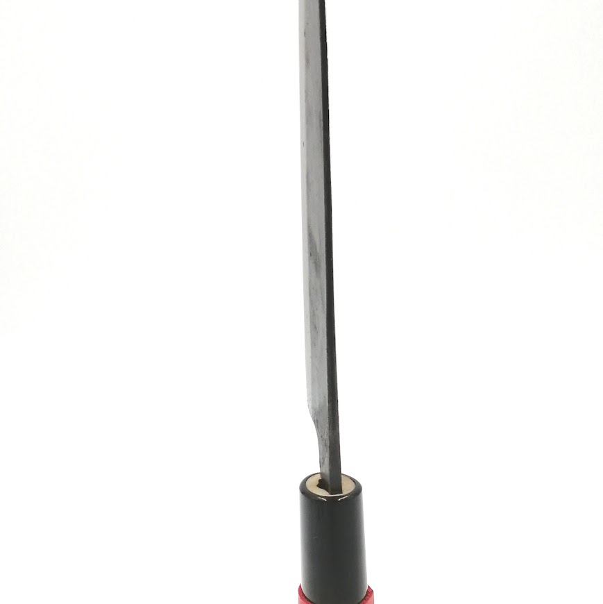 • 高硬度で耐摩耗性に富んだ鋼を使用しているので、使い始めの鋭い切れ味を永く維持する事が出来る為、頻繁に研磨する必要がありません。また柄は踏みつけたり紛失したりしにくい人気の赤塗り仕様です。