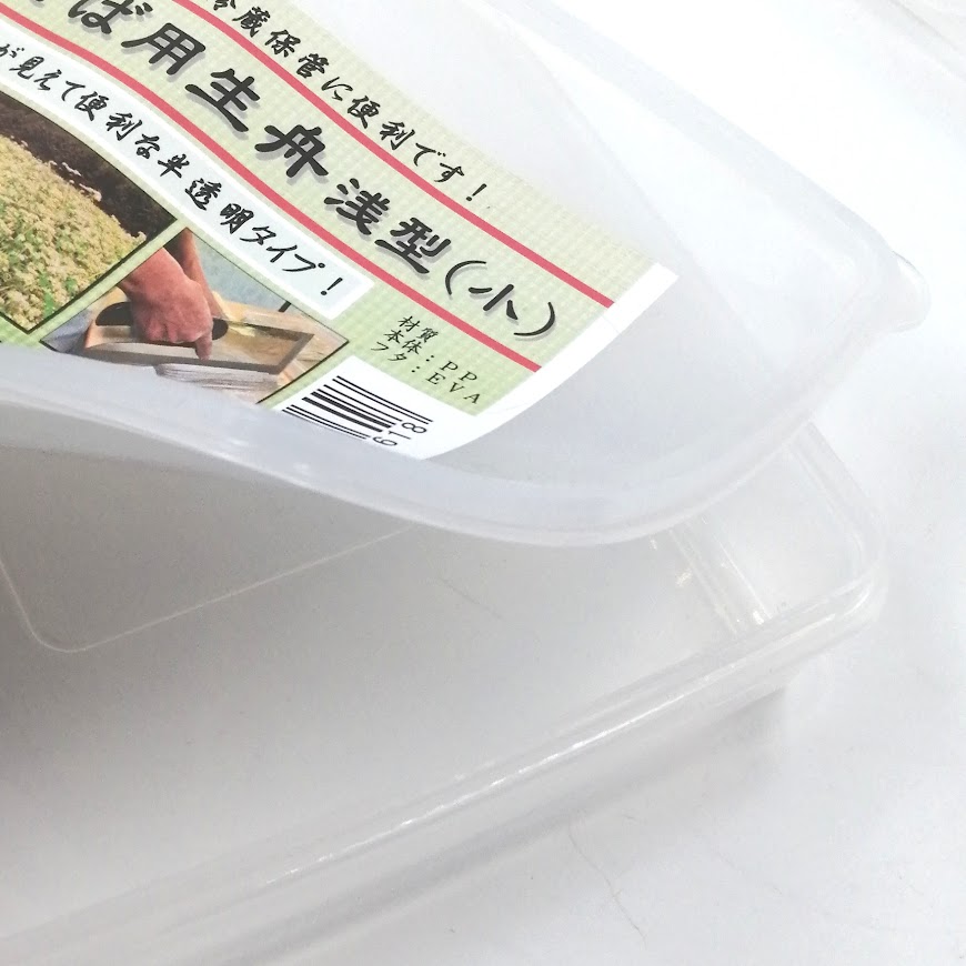 • フタを開けなくても中身が見える便利な半透明タイプです。またフタは柔軟性のあるEVA樹脂製なのでほぼ密閉でき、中の蕎麦が乾燥しにくい構造です。またご使用の度に洗剤で洗えて衛生的です。