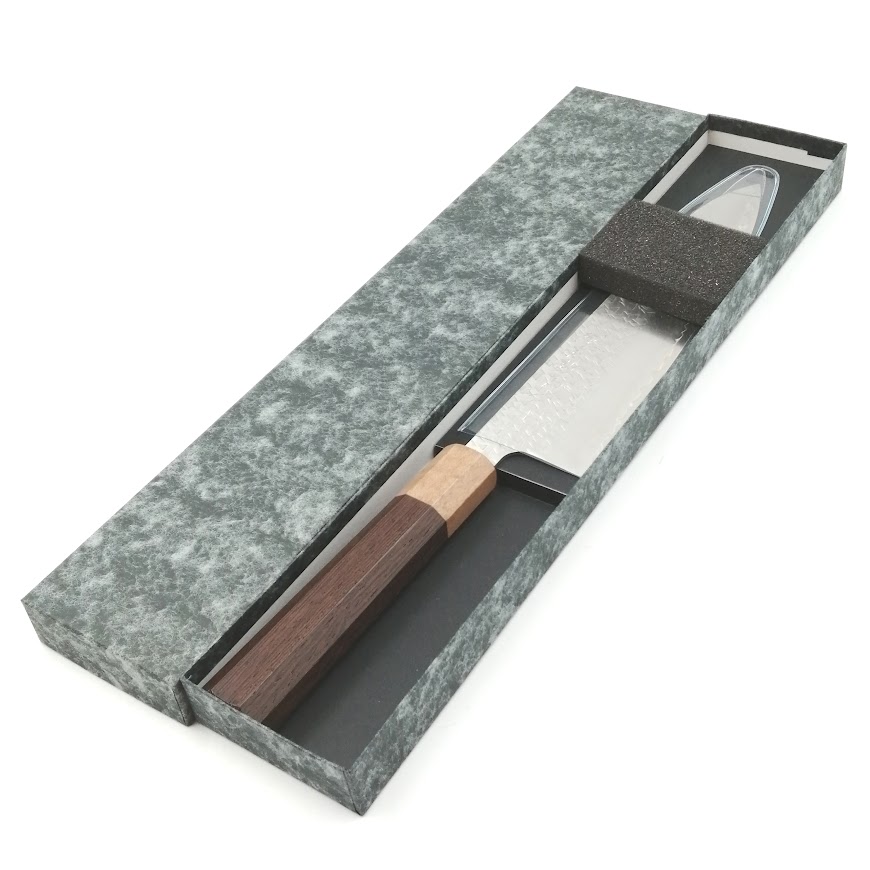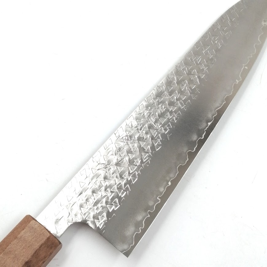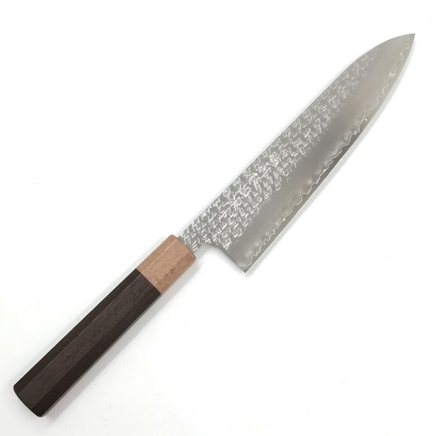 • 越前数馬 吹雪 粉末ハイス鋼鎚目打 牛刀210mm 珈琲桂鉄刀木柄