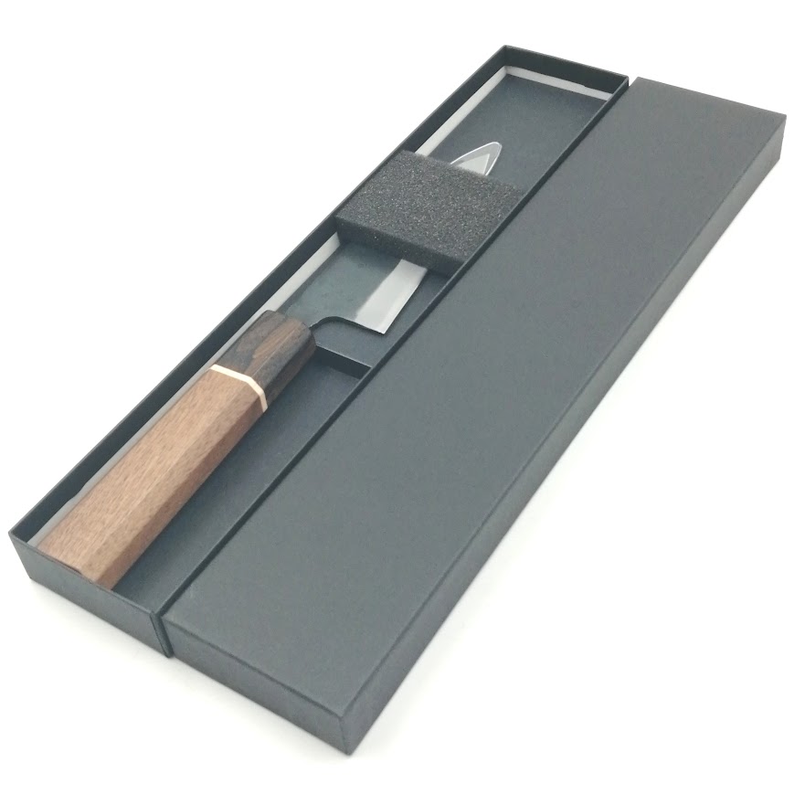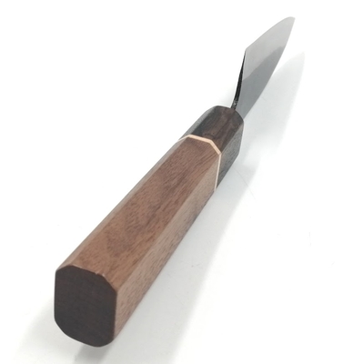 • 鋼は使い始めの切れ味が長く続き、切れ味が落ちて研ぎ直す際、比較的簡単に研げる白二鋼を使用しています。海外の方のお土産にも人気な小包丁です。